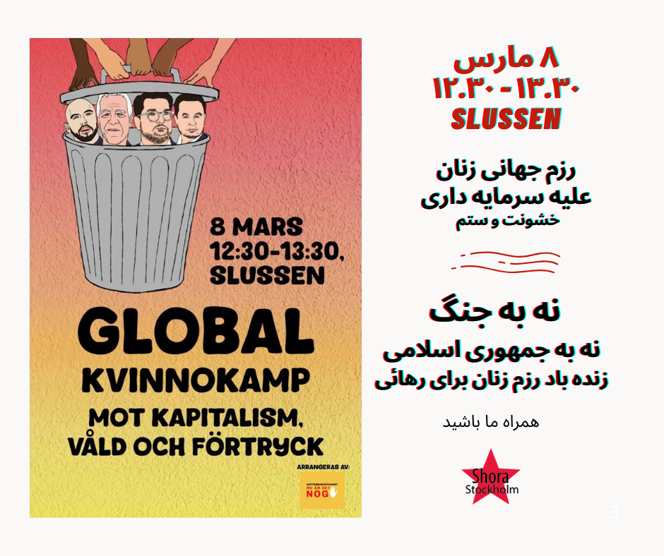 ۸مارس،رزم جهانی زنان علیه سرمایه داری، نه به جنگ، نه به جمهوری اسلامی. زنده باد رزم زنان برای رهايی
